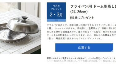 メグミルクの「栗原はるみ ミルクがある生活」では、毎月プレゼントキャンペーンを開催しています。2月・3月は、フライパン用ドーム型蒸し器が、抽選で5名様に当たります。メグミルク 毎月プレゼント【賞品】フライパン用ドーム型蒸し器【当選人数】5名...