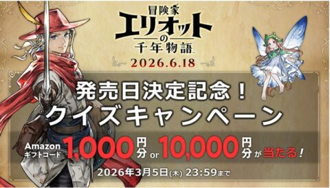 SQUARE ENIXでは『冒険家エリオットの千年物語 発売日決定記念キャンペーン』実施中です。