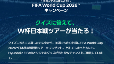 ヒョンデでは『クイズに答えて、W杯日本戦ツアーが当たる!キャンペーン』実施中です。クイズに答えて応募して下さった方の中から、抽選で5組10名様にFIFA World Cup 2026 日本対チュニジア戦現地観戦ツアーが、Wチャンスとして50...